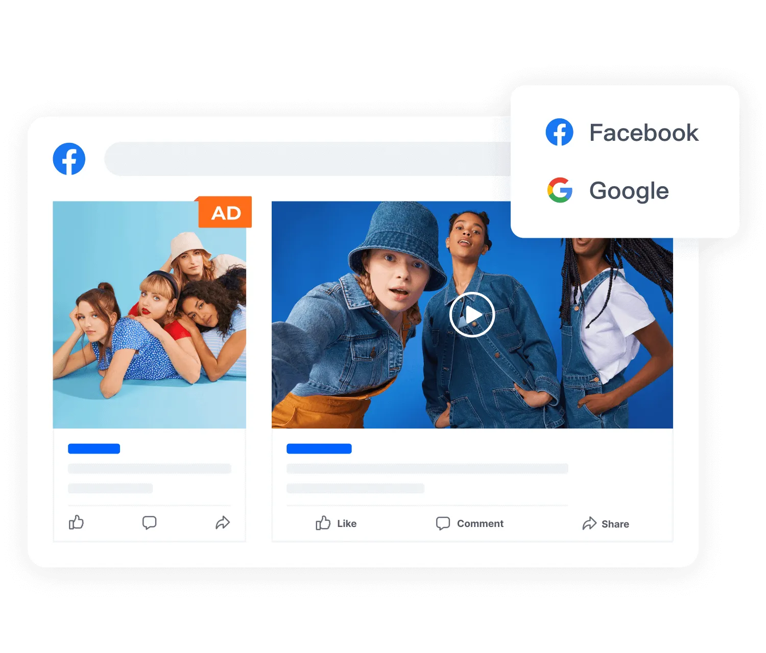 With three steps and one minute, you can create e-commerce-specific Facebook and Google ads.